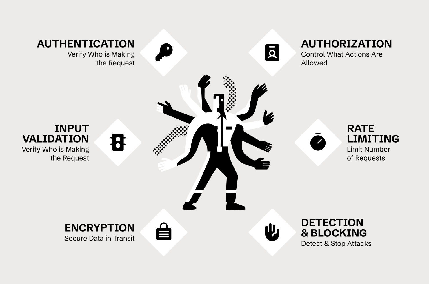 Each of these layers can fail independently. An API might authenticate users properly, but authorise them incorrectly. It might validate input, but fail to rate-limit. It might encrypt traffic, but log tokens in plaintext. Defense requires getting all of them right, simultaneously, across every endpoint.
